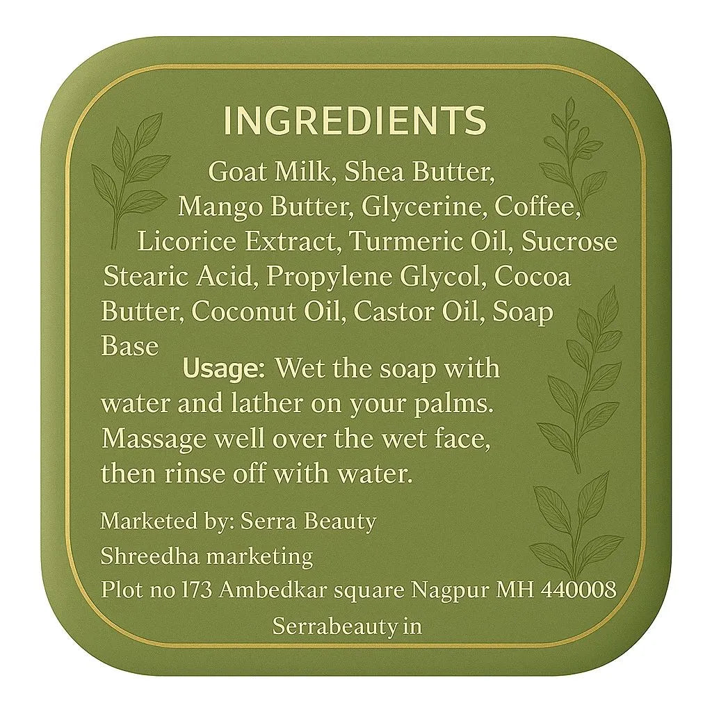 Unveil your skin’s natural radiance with SERRA Beauty All In One Soap, a luxurious blend of Coffee, Licorice, and Turmeric Extracts crafted to gently remove tan, brighten dull skin, and restore a healthy glow. Infused with the richness of Goat Milk, this 100% natural, paraben-free soap deeply nourishes and hydrates your skin while giving it a visibly soft and glowing appearance.